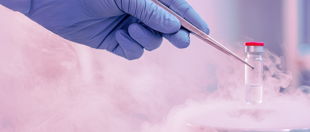 Os óvulos são congelados em um recipiente com nitrogênio líquido, e seguem para o armazenamento.